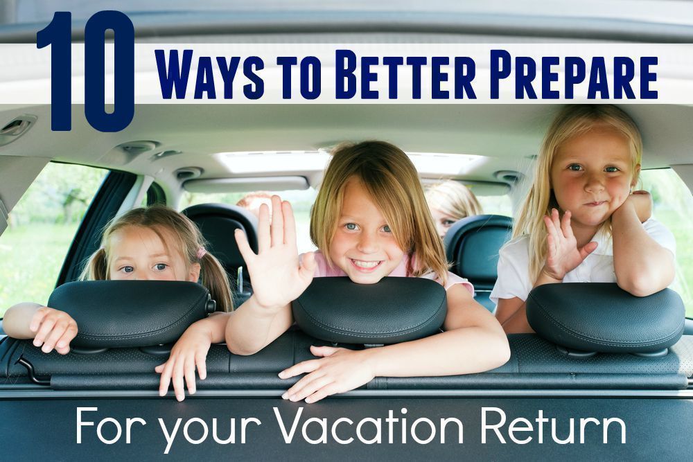 So what DO you do before ou leave to make that arrival back home more manageable?  Here are TEN things that we thought were detrimental to ensuring that you can stress LESS when you return from that fun out of town trip…