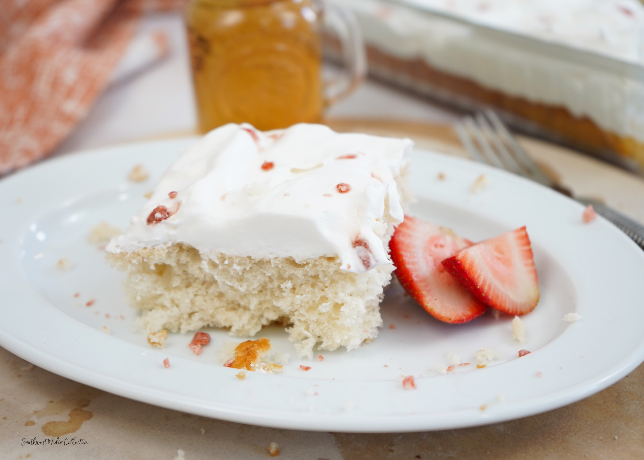 Divide the cream soda, follow the instructions, and then bake. Enjoy the cake immediately or refrigerate for later – whatever works best for you.
