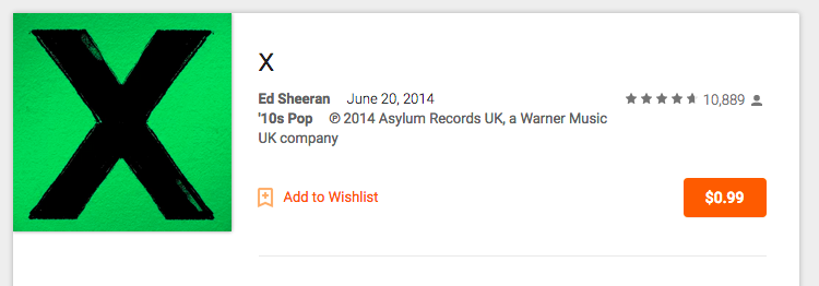 If you like Ed Sheeran … right now on Google Play you can capture his Album “X” for just $.99 – WELL worth every penny!