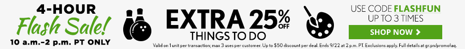 Through 2 p.m., score 25% OFF up to 3 local Things to Do on Groupon with code FLASHFUN.