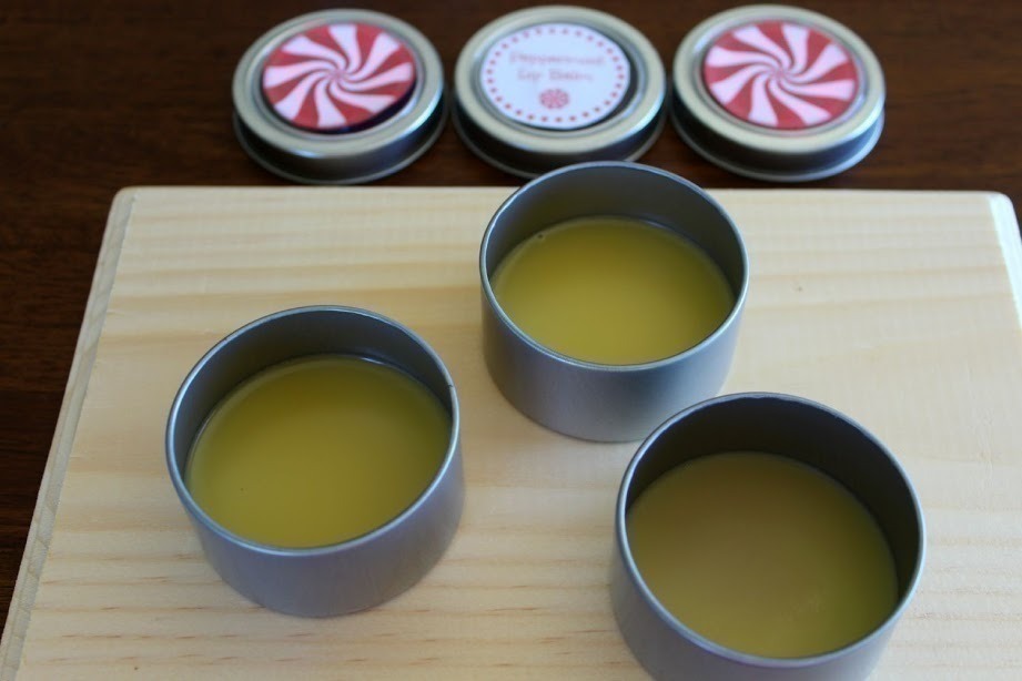 Melt in the microwave at 25 second intervals, then carefully remove, and add the peppermint essential oil. Mix well, then pour into your lip balm tins.