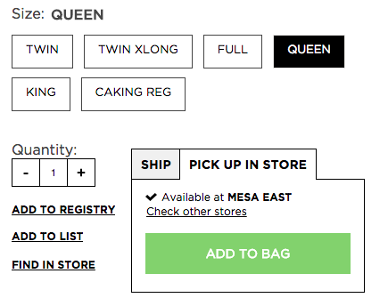 Add 1 Queen Pillow HERE for $4.99 – select pick up in store. THEN add a reusable tote HERE for $.99.