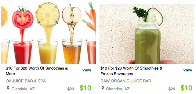 They have plenty of other deals too – the Juice Bar & Spa in Glendale, Bellagio Pizza in Mesa, Raw Organic Juice Bar in Chandler, and Francisco’s Brick Pizza & Pitas in Gilbert (amidst many others too!)
