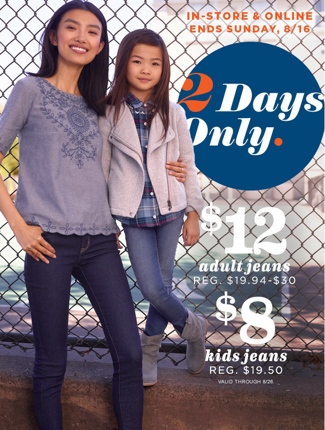 Through tomorrow ONLY at Old Navy score Adult Jeans for just $12, and Kids Jeans for just $8.