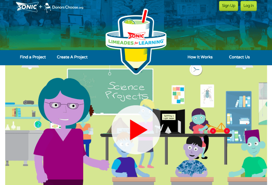 Limeades for Learning is a national initiative of SONIC, America’s Drive-In to support public school teachers in local communities. In partnership with DonorsChoose.org, SONIC will provide essential funds needed for learning materials and innovative teaching techniques to inspire creativity and learning in today’s youth. Over the course of the three week campaign, SONIC fans can vote daily on their favorite projects, and the projects with the most votes get funded each week.