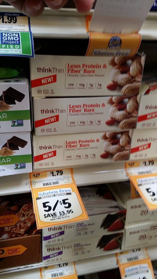 thinkThin Bars are 5/$5.00 this week at Sprouts, and if you are hlding onto that insert, below, you can pay just $.50 per bar.