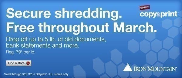 (Ends Today) Staples: 5 FREE Pounds of Document Shredding