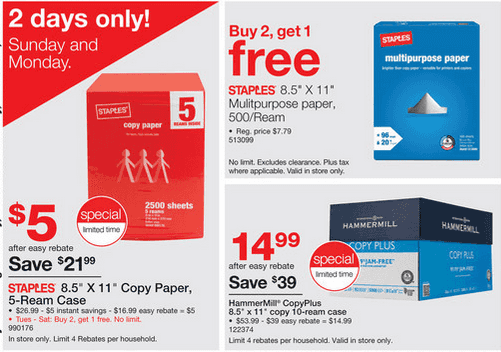 This week you can stock up on paper at Staples as low as $1.00 per Ream – the offer is valid for 2-days ONLY (10/11 & 10/12).