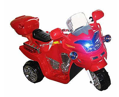 Lil’ Rider™ FX 3 wheel battery powered bike has a battery capacity of 6 V 4.5 Ah and features working chrome colored headlights.