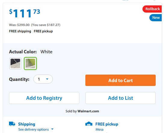 ONLY the white is priced at $111 – you can opt for the Darker one and pay much more.
