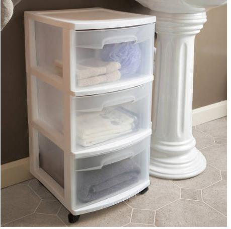 Walmart can help you stay organized with this 3-Drawer Sterilite Cart (2 pack) for just $18.…. Black is also available in a case of 2 for the same price.